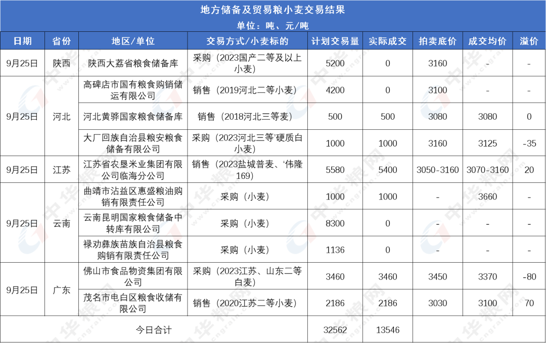 图2:9月25日地储小麦/贸易粮交易结果